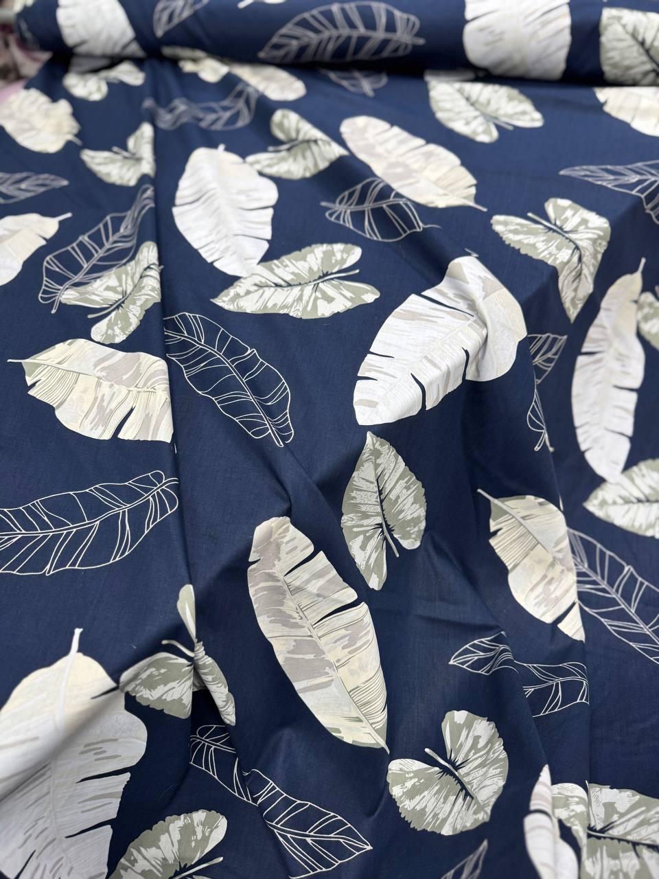 ملحفه طرح برگ سرمه ای فیلور | نخ پنبه عرض ۲/۴۰