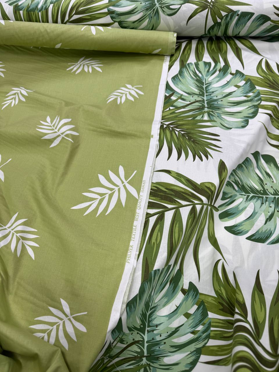 ملحفه طرح هاوایی سبز فیلور | نخ پنبه عرض ۲/۴۰